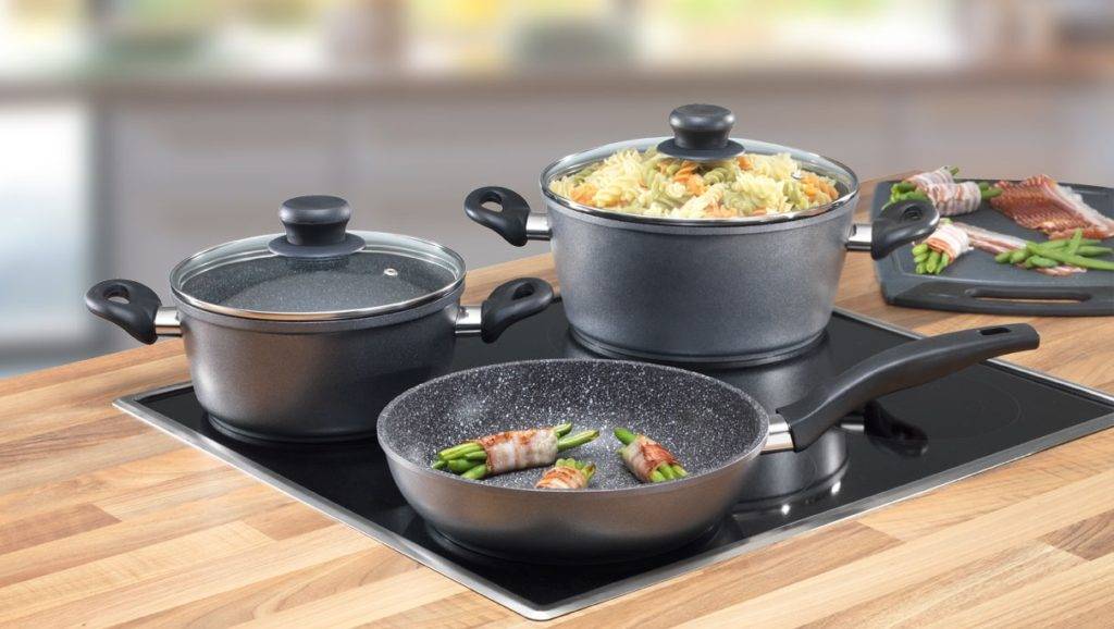 Мраморная посуда обычно стоит дешевле титановой или алмазной и занимает средний сегмент. Несмотря на некоторые недостатки, соотношение цена/качество у гранитных сковородок может порадовать. Они проявляют отличные антипригарные свойства, полностью безопасны и довольно долговечны.