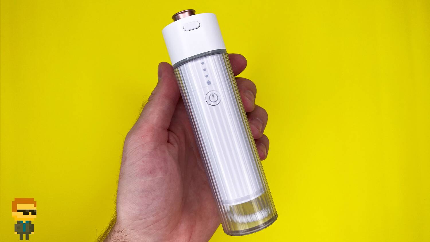 Блок управления состоит из кнопки включения устройства, индикации режимов и заряда батареи и кнопки-блокировки для снятия насадки-распылителя. В сложенном (дорожном) виде корпус полностью находится в прозрачном резервуаре для воды, поэтому кнопки управления защищены от случайных нажатий.