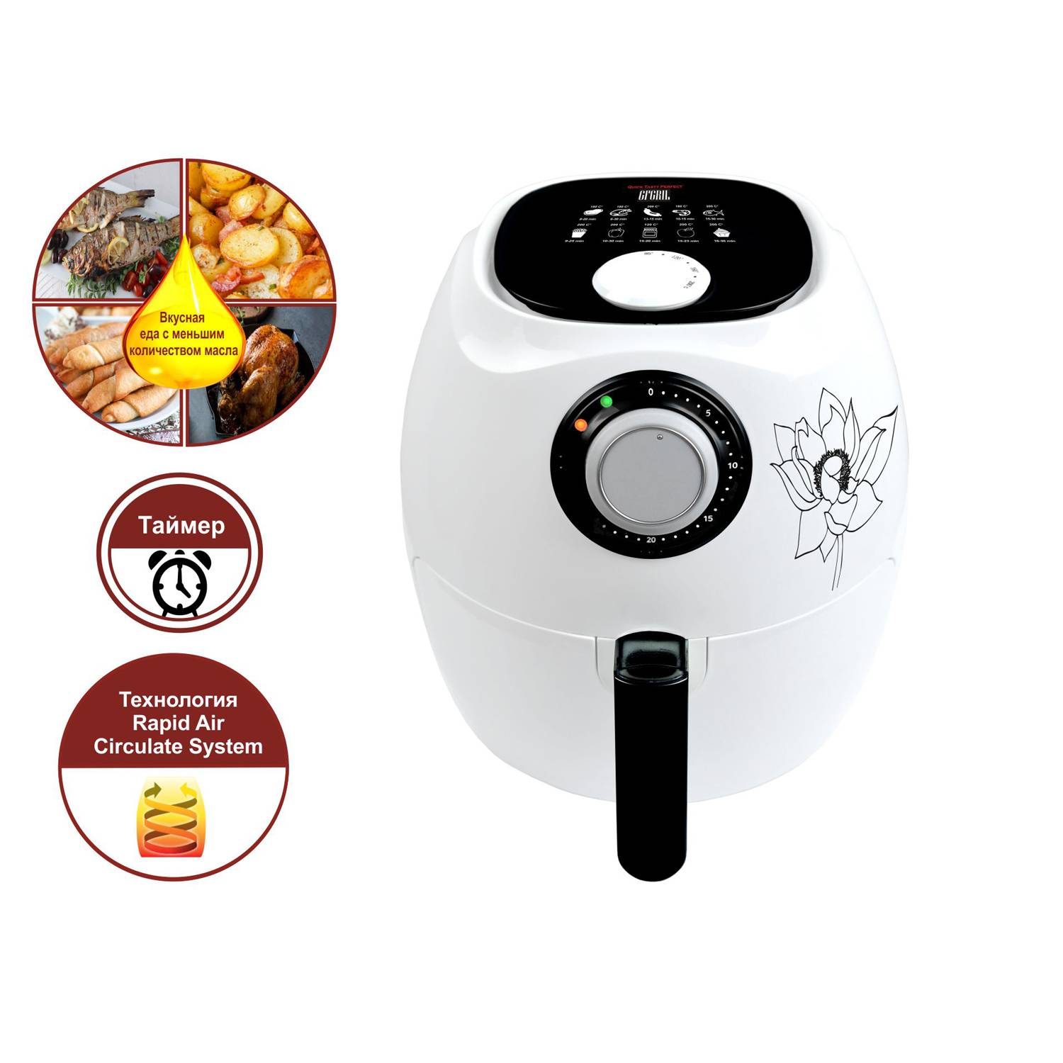 Функциональная модель немецкого бренда Oberhof Force G-37 мощностью 1200 Вт. Есть 7 программ для приготовления разных блюд, таймер, звуковой сигнал, который срабатывает после завершения процесса готовки. Аэрогриль Оберхоф оборудован термостойкой ручкой корзины, поэтом ожоги при использовании прибора исключены. После окончания готовки прибор автоматически отключается.