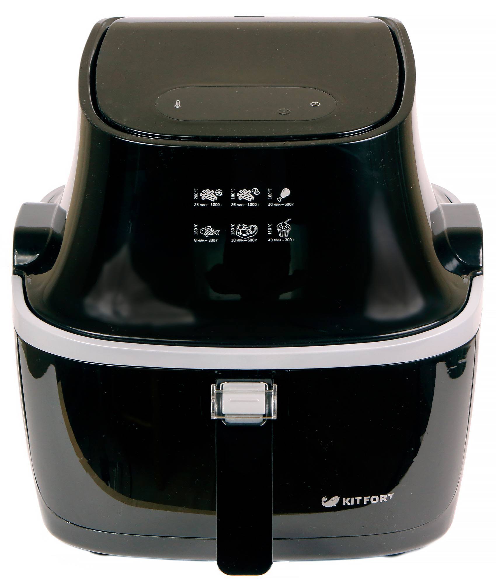 В ручку крышки встроен датчик открывания. Работа аэрогриля приостанавливается в момент, когда рукоять поднята. Съемный механизм также позволяет поддерживать чистоту прибора. Исходный объем в 10 литров увеличивается специальным кольцом.