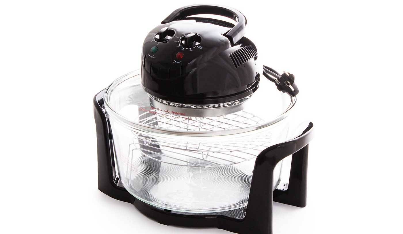 Конструкция аэрогриля очень проста: колба, подставка, да крышка. Именно в крышке и находится весь механизм прибора. На ней расположен нагревательный элемент, вентилятор и панель управления. Крышка имеет специальные отверстия, через которые в чашу попадает циркулирующий разогретый воздух.