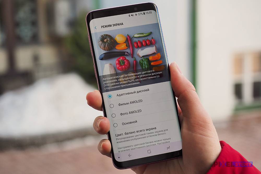 Если пользователю не понравится ядрёная контрастность и цветастость экрана Galaxy S9, это можно поправить в настройках. Цветовой профиль экрана настраивается крайне гибко. Хотя это полностью не снимает проблему приукрашивания действительности у AMOLED экранов, но в целом дает возможность сделать картинку максимально близкой к реальности