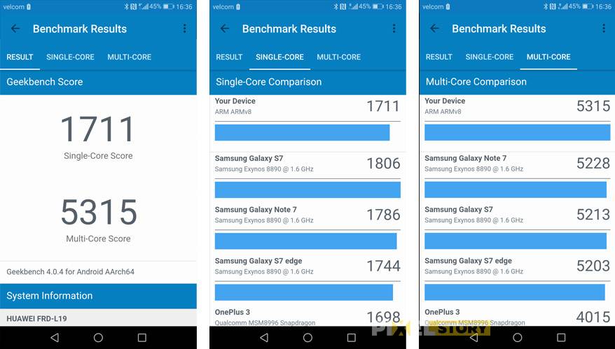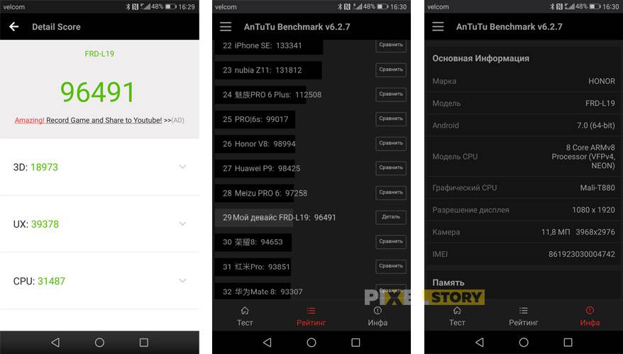 Результаты синтетических тестов Honor 8 приведены ниже.