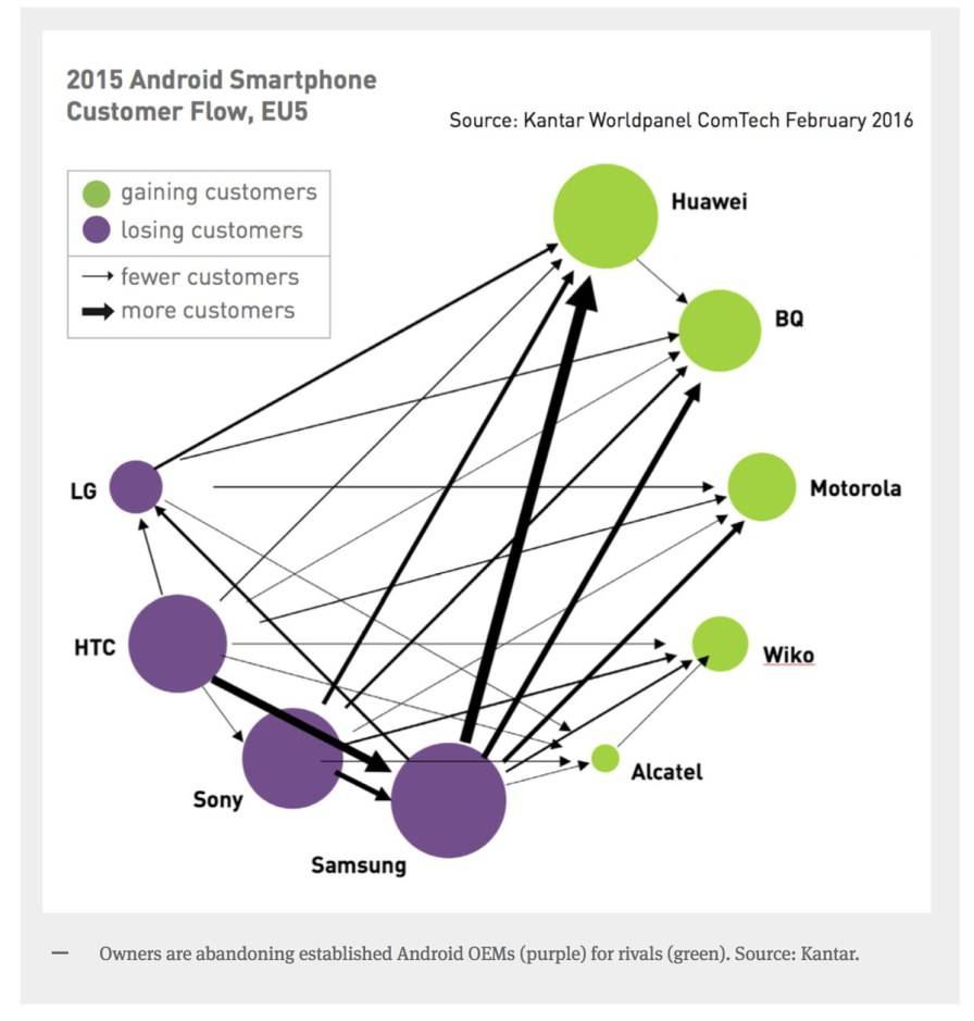 Вот интересный график, на котором видно как мигрируют пользователи Android.