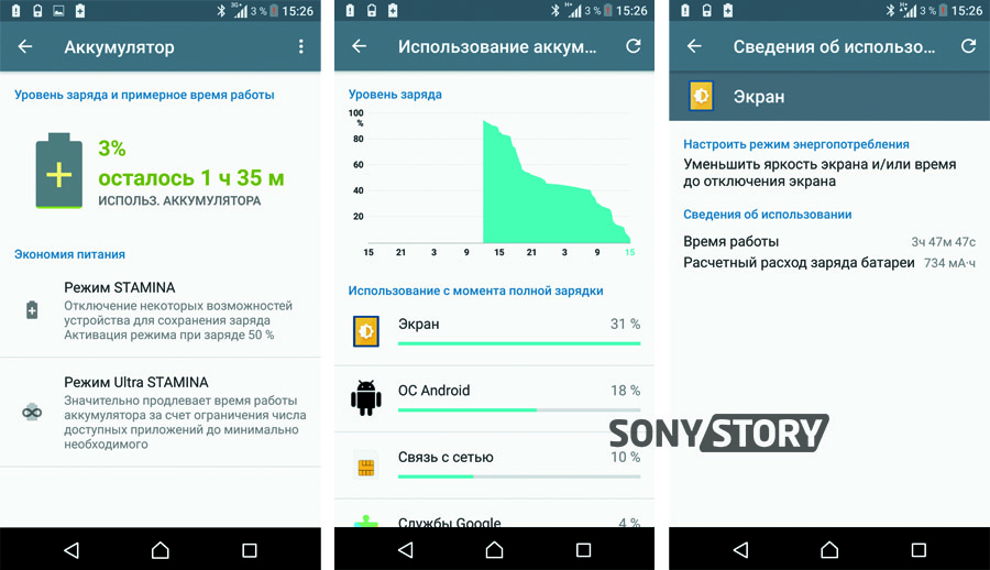 Время работы Xperia X Dual колеблется на отметке 1-1,5 суток достаточно интенсивного использования. У меня это социальные сети (особенно твиттер и инстаграм) около часа в день, просмотр YouTube 1-1,5 часа, прослушивание музыки 1-1,5 часа (проводные наушники), разговоры 20-30 минут, браузер+книги где-то 1 час. Время работы экрана за один цикл зарядки в районе 4 часов. При такой использовании смартфон легко может дожить на одном заряде от одного утра до следующего.