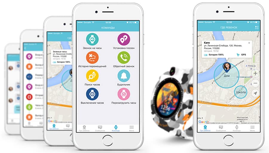 Приложение состоит из четырех основных модулей: «где ребёнок», сообщения, команды и меню. Обо всем по порядку.