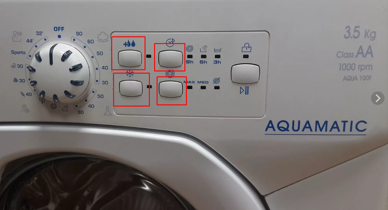 - Нажать первую кнопку стирки или дополнительной функции, расположенную слева.