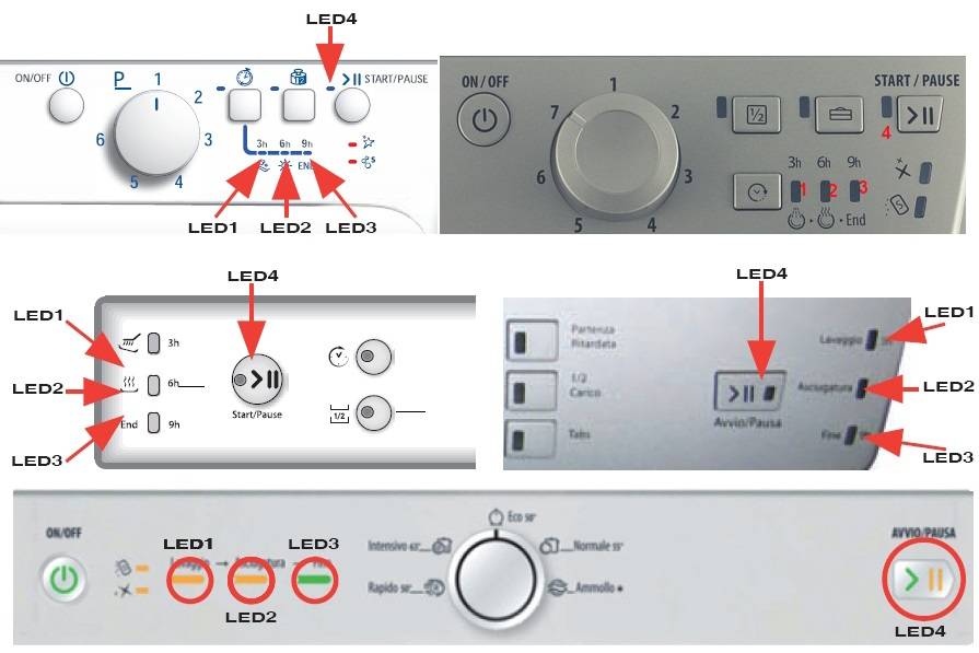 Если открыть дверцу на панель управления есть клавиши и лампочки индикации: