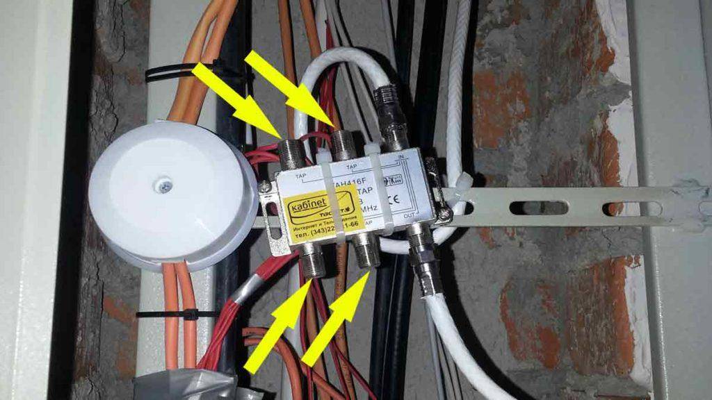 Подключение ТВ кабеля в щитке к ответвителю
