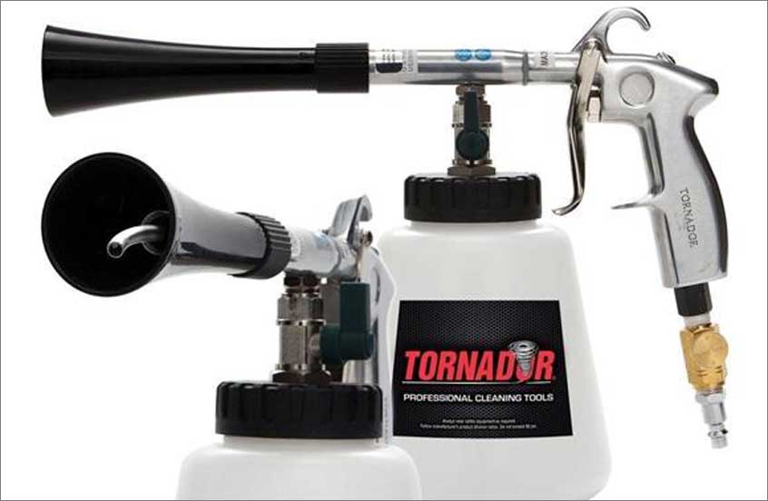 Для повышения качества чистки применяется Торнадор – специальный аппарат для распыления жидких средств или продувки труднодоступных мест воздухом под давлением до 10 бар.