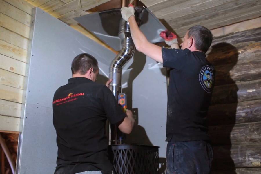 - Дымоход расположен в центре, что упрощает монтаж конструкции