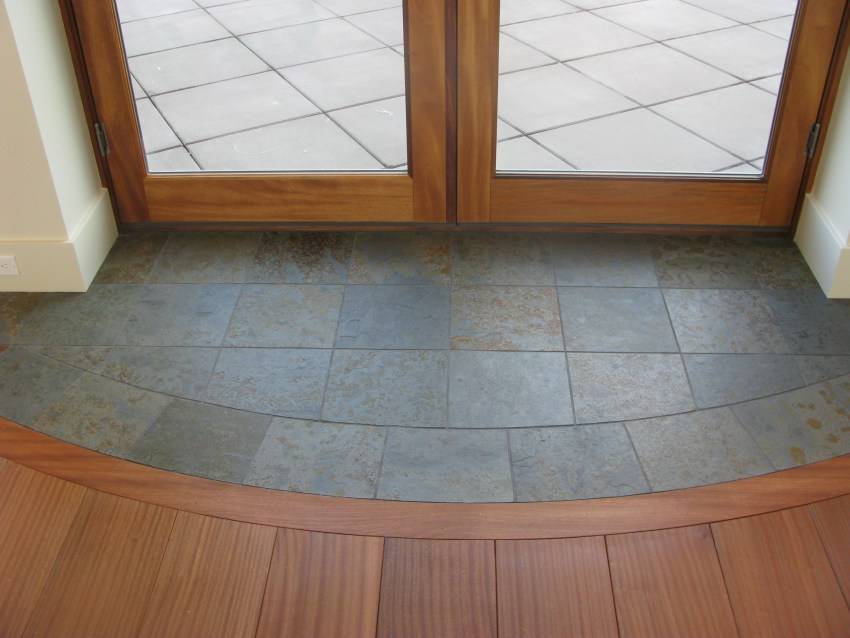 Оптимальным вариантом плитки для комбинации с ламинатом является IV класс износостойкости. Этого достаточно для того, чтобы выдерживать нагрузку от обуви с твердой подошвой и даже металлическими набойками. Твердость кафеля обычно выбирают в пределах 7 ед., этого достаточно, чтобы не выкрашивать поверхность гравийной и зольной крошкой, которых в избытке на улицах в зимнее время.