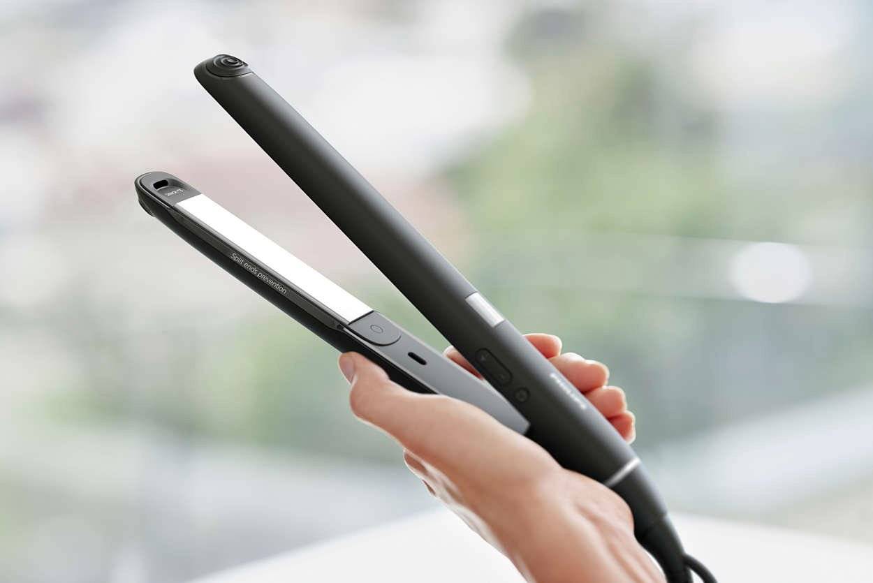 Это эргономичная модель, предназначенная для использования в домашних условиях, но по своим характеристикам приближающаяся к выпрямителям профессионального уровня. Помимо привлекательного ультратонкого дизайна, модель может похвастаться функциональностью – с ее помощью можно не только делать прямые пряди, но и создавать локоны. В комплектацию входят термочехол и фирменная косметичка.
