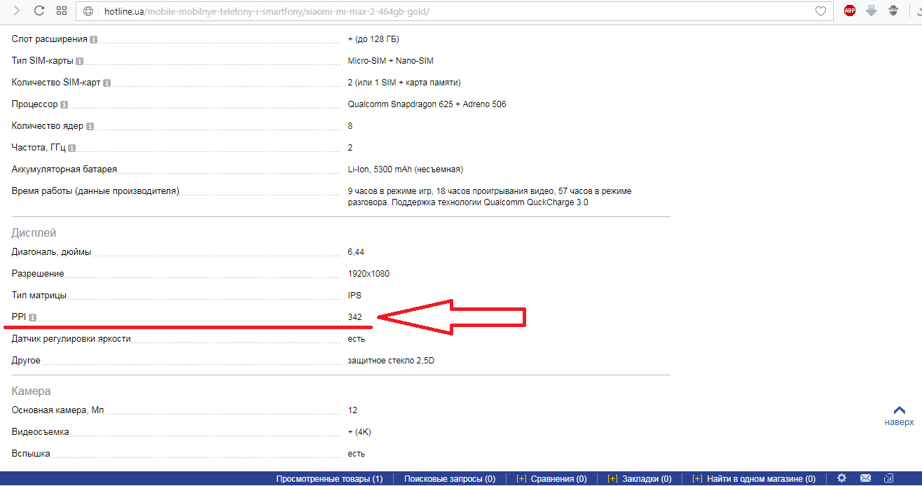 Найти показатель в характеристиках того же смартфона обычно просто. Обычно она содержится в разделе «Дисплей». Пример можно видеть на рисунке 3.