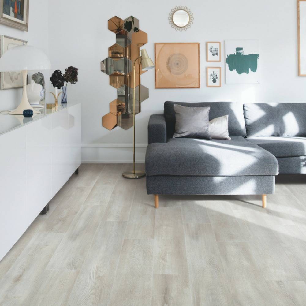 - выгодно отличается большей устойчивостью к механическим повреждениям, которые неизбежны на полу: следы от каблуков, ножек мебели, песка, часто попадающего с обувью в помещение;
