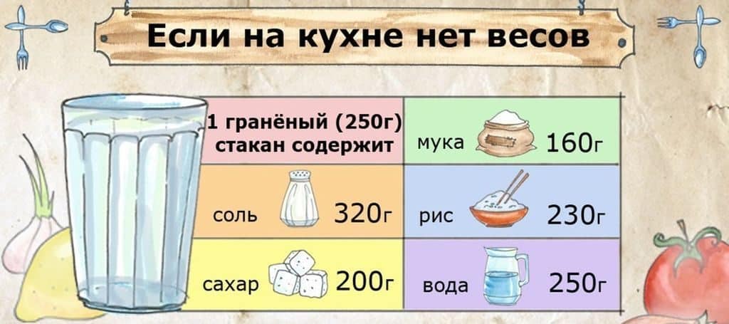Откройте любую кулинарную книгу, изданную в советские годы. В большинстве рецептов единицей измерения указан стакан. Без какого-либо уточнения, какой. Всем домохозяйкам ясно, что гранёный. В гранёном стакане (до риски) умещается 200 мл литров жидкости, в случае с водой и водкой – ровно 200 граммов, 50 граммов геркулеса, 100 граммов пшеничной муки, 220 граммов соли и 180 граммов сахарного песка. И так далее. Наши бабушки все эти меры знали наизусть, а мы можем погуглить, если захочется узнать наверняка.