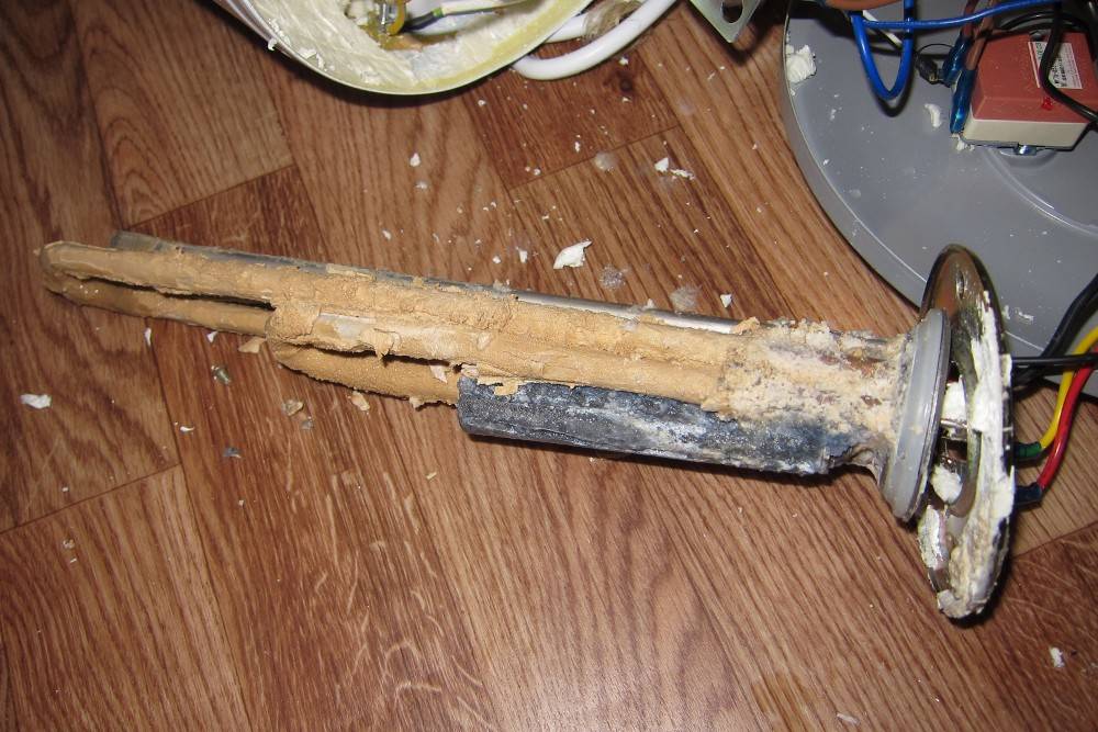 - на нагревательном элементе появилось много отложений в виде слоя накипи;