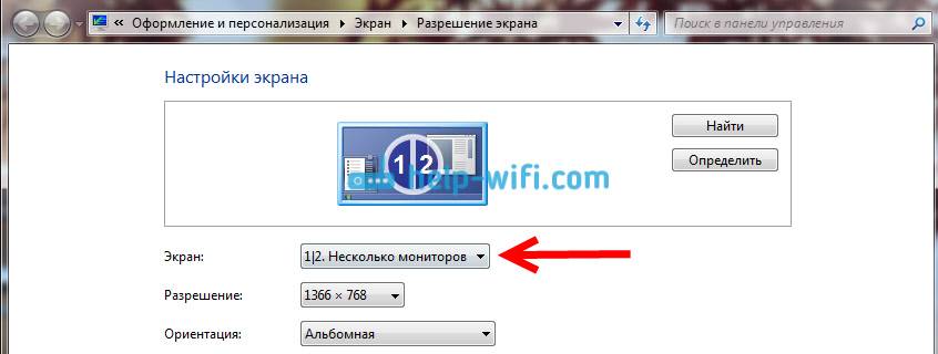 Откроется окно, в котором напротив пункта Экран должно быть указано Несколько мониторов, или название вашего телевизора. Можете выбрать из списка, и нажать Ok. Так же, можно сменить разрешение. Но, разрешение как правило подстраивается автоматически. Так что без необходимости лучше не трогать.