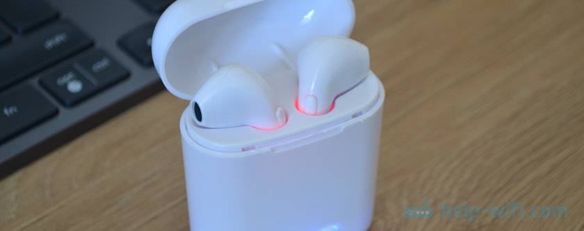Если это происходит когда наушники вне кейса (что бывает очень редко), то попробуйте их выключить и включить. Для этого нужно зажать кнопку на каждом наушнике на 3-5 секунд, после чего повторить это еще раз. Если Bluetooth наушники горят красным в зарядном кейсе, то это говорит о том, что они заряжаются.