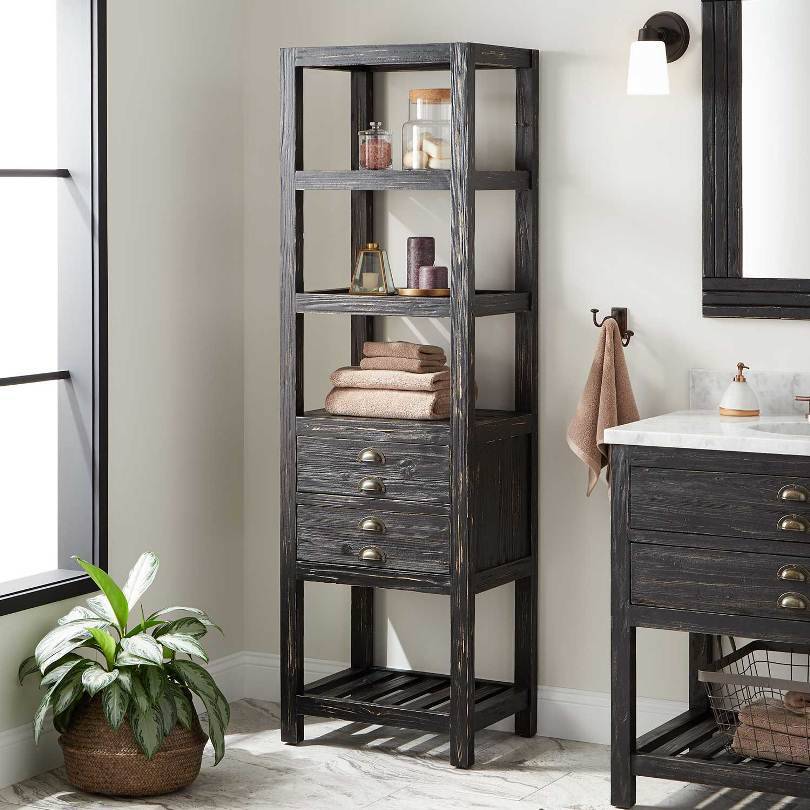 Если ванная комната небольшая, вряд ли удастся поставить громоздкие шкафы и массивные ящики.