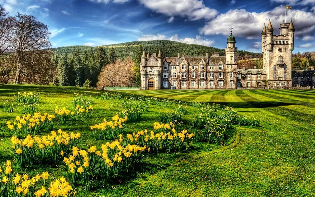 Балморал – один из красивейших шотландских замков. Он далеко не такой старинный, как остальные в нашей подборке, но от этого не менее интересный. Этот замок – королевская резиденция в Шотландии. Он находится в Абердиншире на берегу реки Ди.