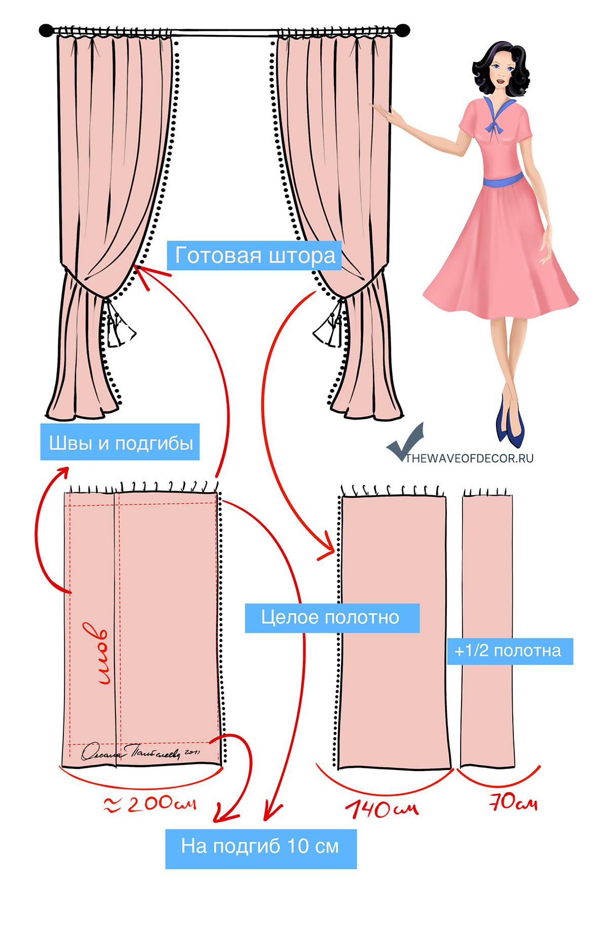 - Хочешь, чтобы шторы были со складками как во дворце – умножай на 2 или 2,5 смело.