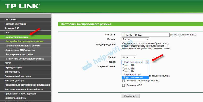 Смена режима Wi-Fi (mode) на роутере TP-Link