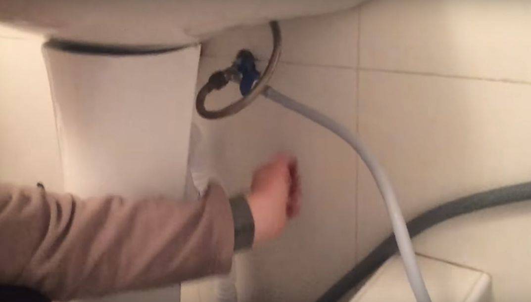 Свободный конец шланга можно опустить в унитаз, ванну или раковину. Это не самый лучший вариант, потому что это неудобно и конец может соскочить. Тогда вода зальет пол, а может попадет и к соседям снизу.