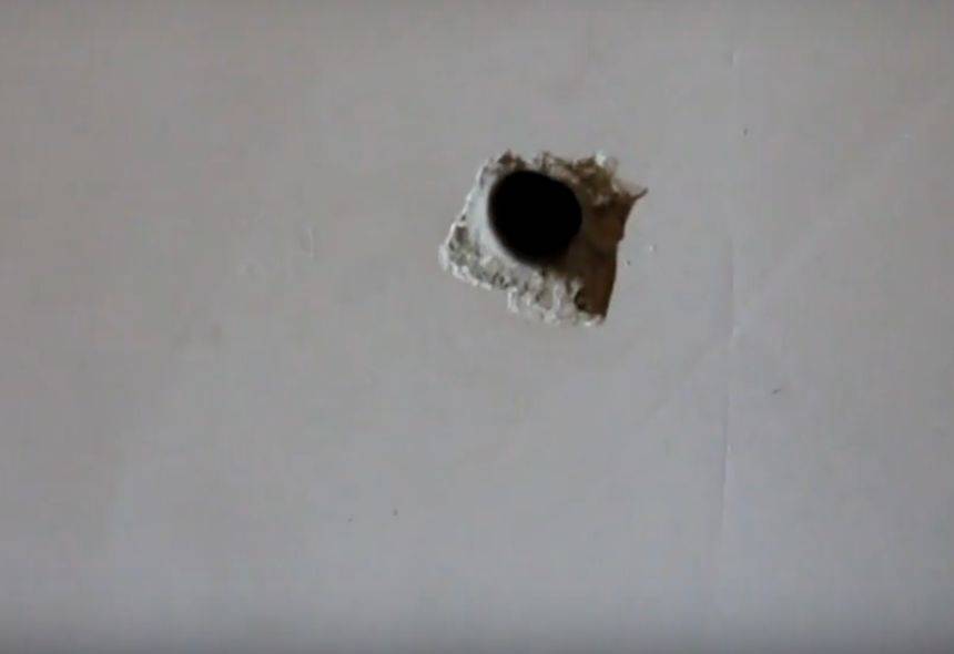 ![]() | 2. Берем маленький отбойник и пробиваем небольшую точку на том месте, где будем прорезать отверстие. |