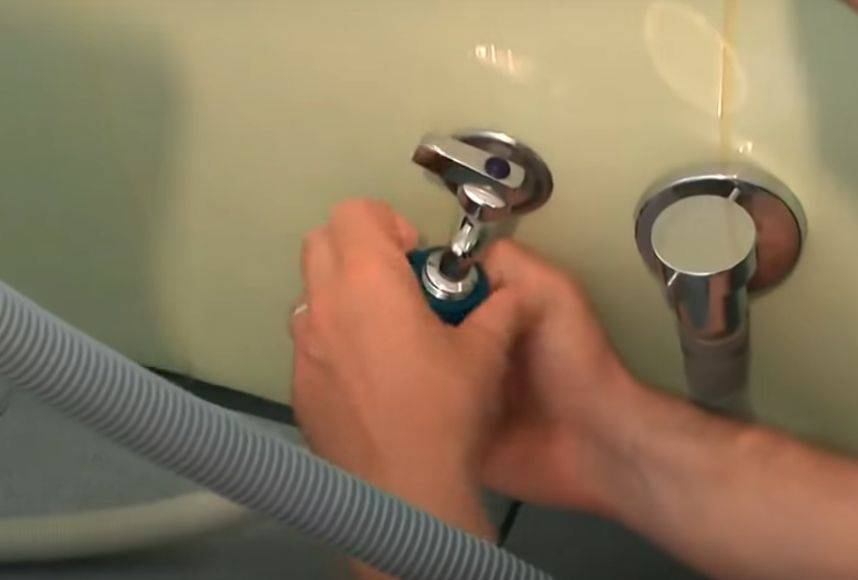 Существует и другой вариант подключения машинки к водопроводу, путем соединения подводящего (заливного) шланга со сливным краном в ванной или раковины.