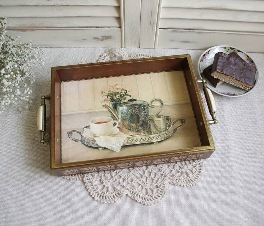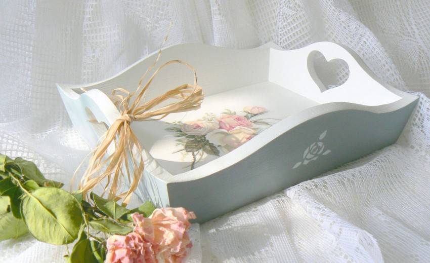 В каждом доме найдется старый поднос, который жалко выкидывать. Такая техника даст вторую жизнь этому предмету, ну а в вашем доме появится уникальный предмет декора. Техника декупажа подноса не является сложной и ее можно сделать своими руками.