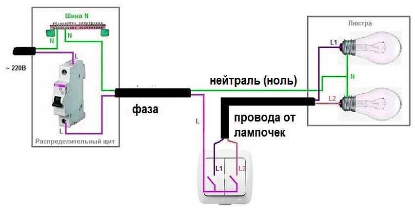 Схема: как подключить люстру на двойной выключатель