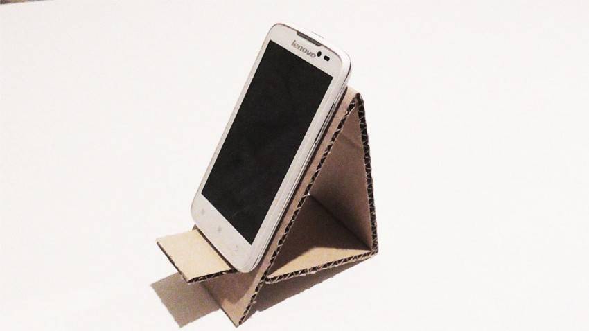 Картон часто используют в качестве материала для изготовления самодельных поделок. Практически в каждой семье имеется ненужная картонная коробка. Она подойдет для изготовления держателя под мобильный телефон или планшет.