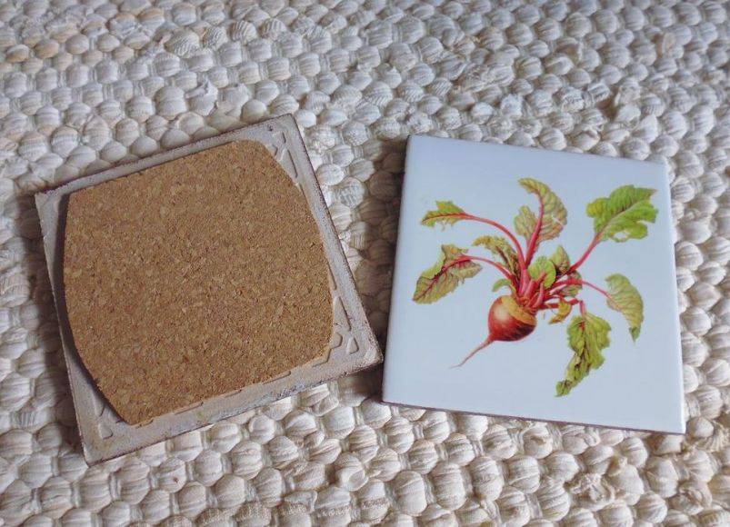 У Вас осталась после ремонта красивая керамическая плитка? Она прекрасно справится с обязанностями подложки под сковородки. Чтобы не поцарапать стол наклейте на нее снизу листовую пробку или плотную ткань.