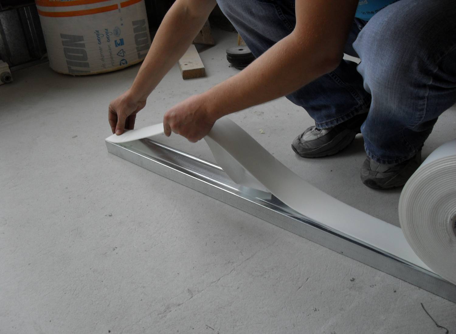 Шаг 6. Проклейте профили уплотнительной лентой и прикрутите их при помощи дюбель-гвоздей к стене.