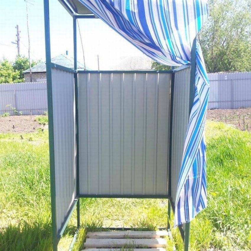 Удобная, широкая кабинка летнего душа из профильной трубы и профнастила.