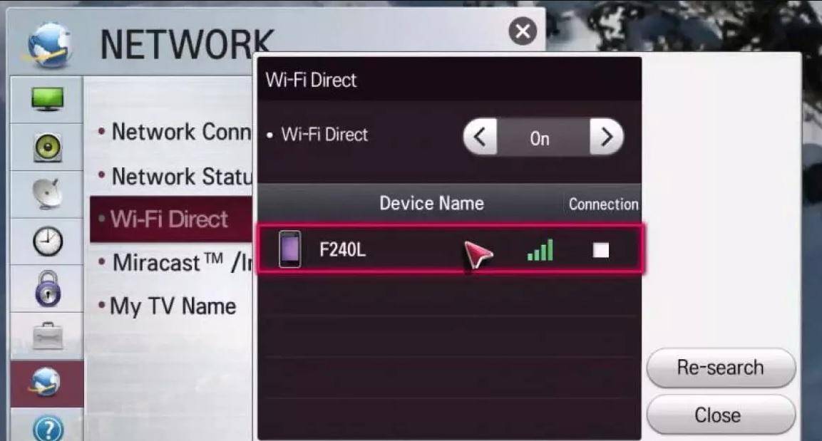 Чтобы задействовать во время прослушивания музыки Wi-Fi, нужно досконально знать особенности телевизора. На устройствах компании LG используется функция Wi-Fi Direct. Ее можно активировать в настройках, а затем выбрать смартфон для подключения.