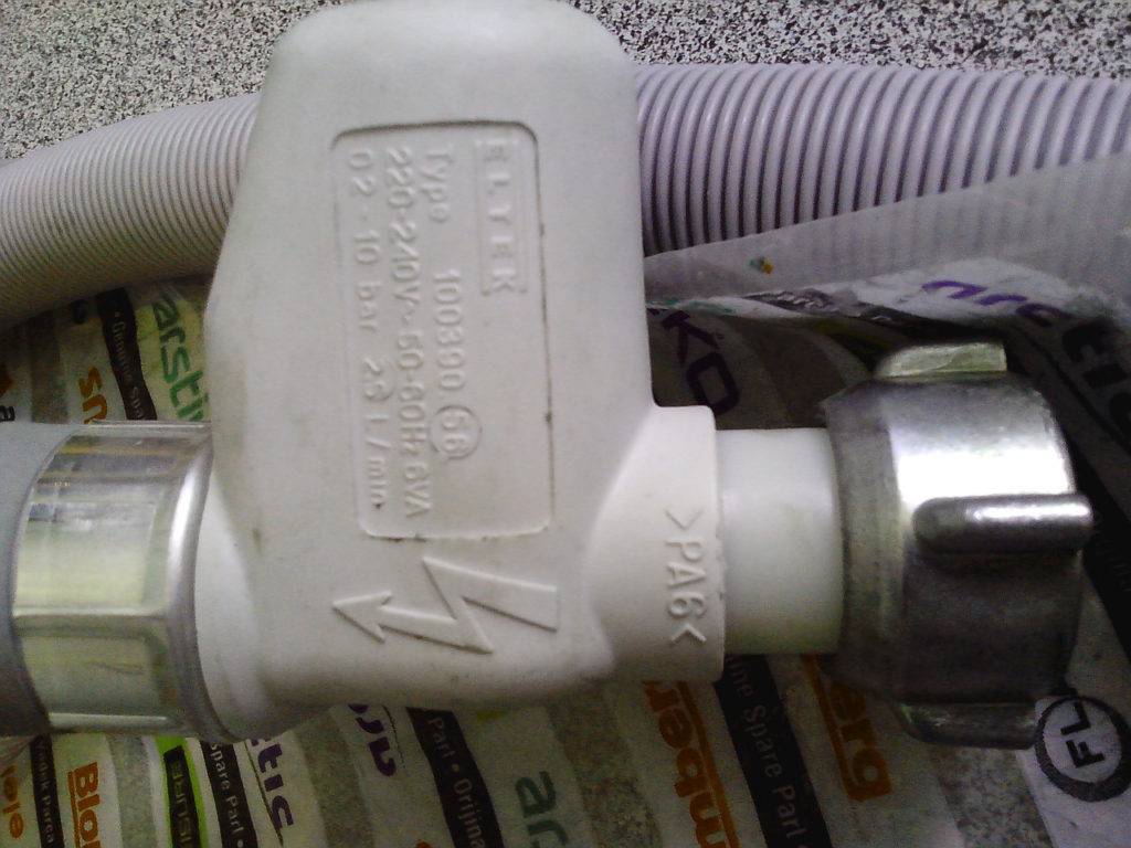 Электромагнитный впускной клапан системы Aquastop, встроенный в заливной шланг