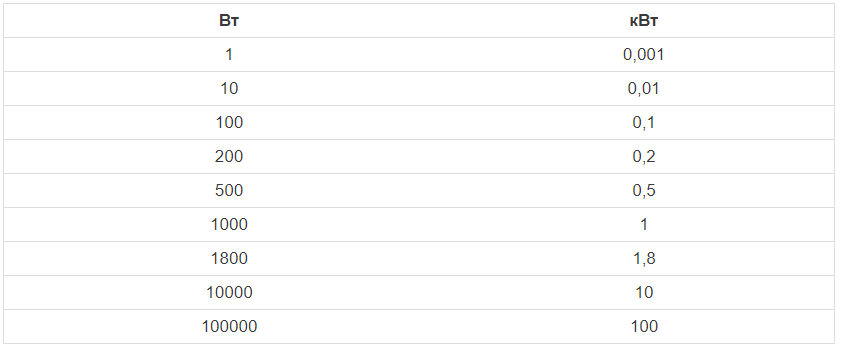 Чтобы перевести Вт в кВт, нужно значение Вт десятикратно увеличить.