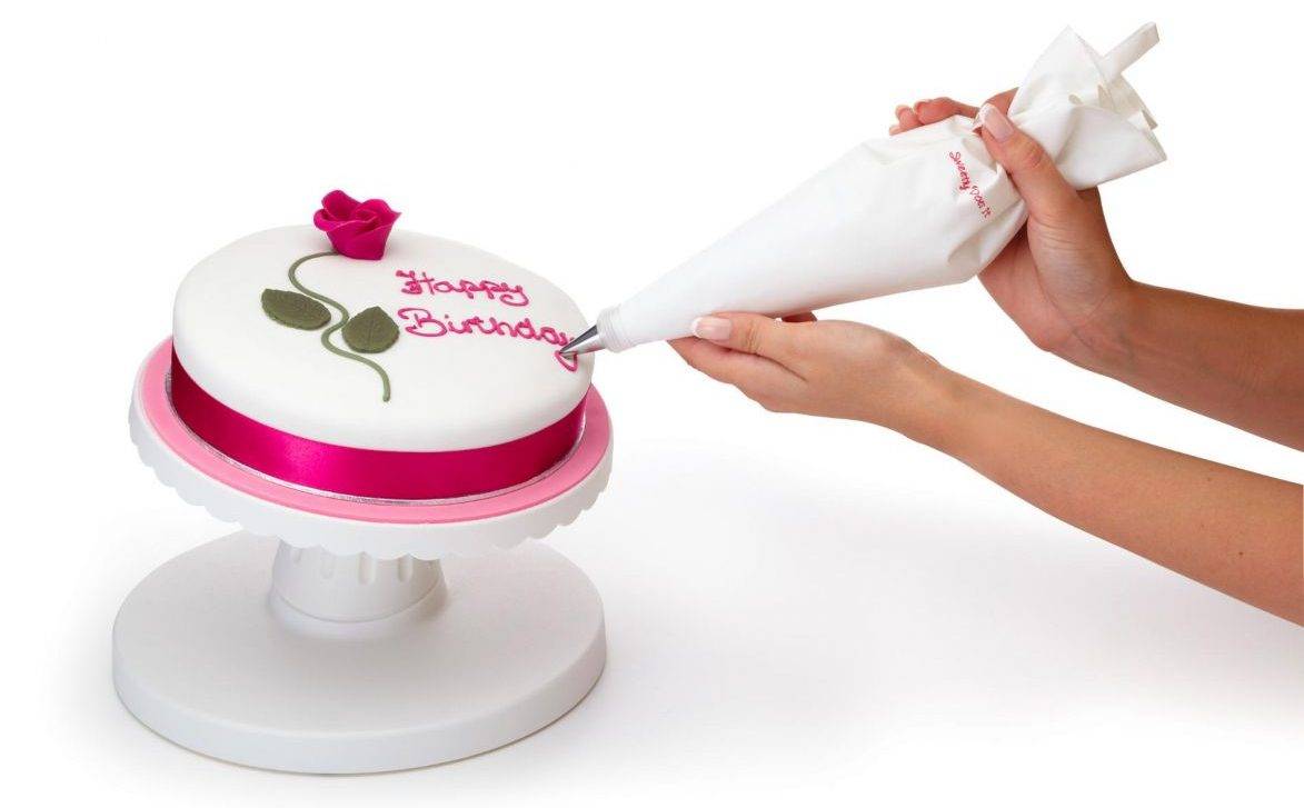 Поворотный стол поможет сделать кремовую декорацию ровной. Да и сам процесс декорирования превращается в завораживающе красивое действо.