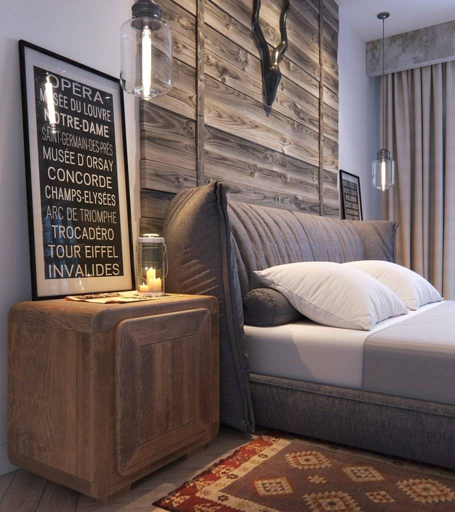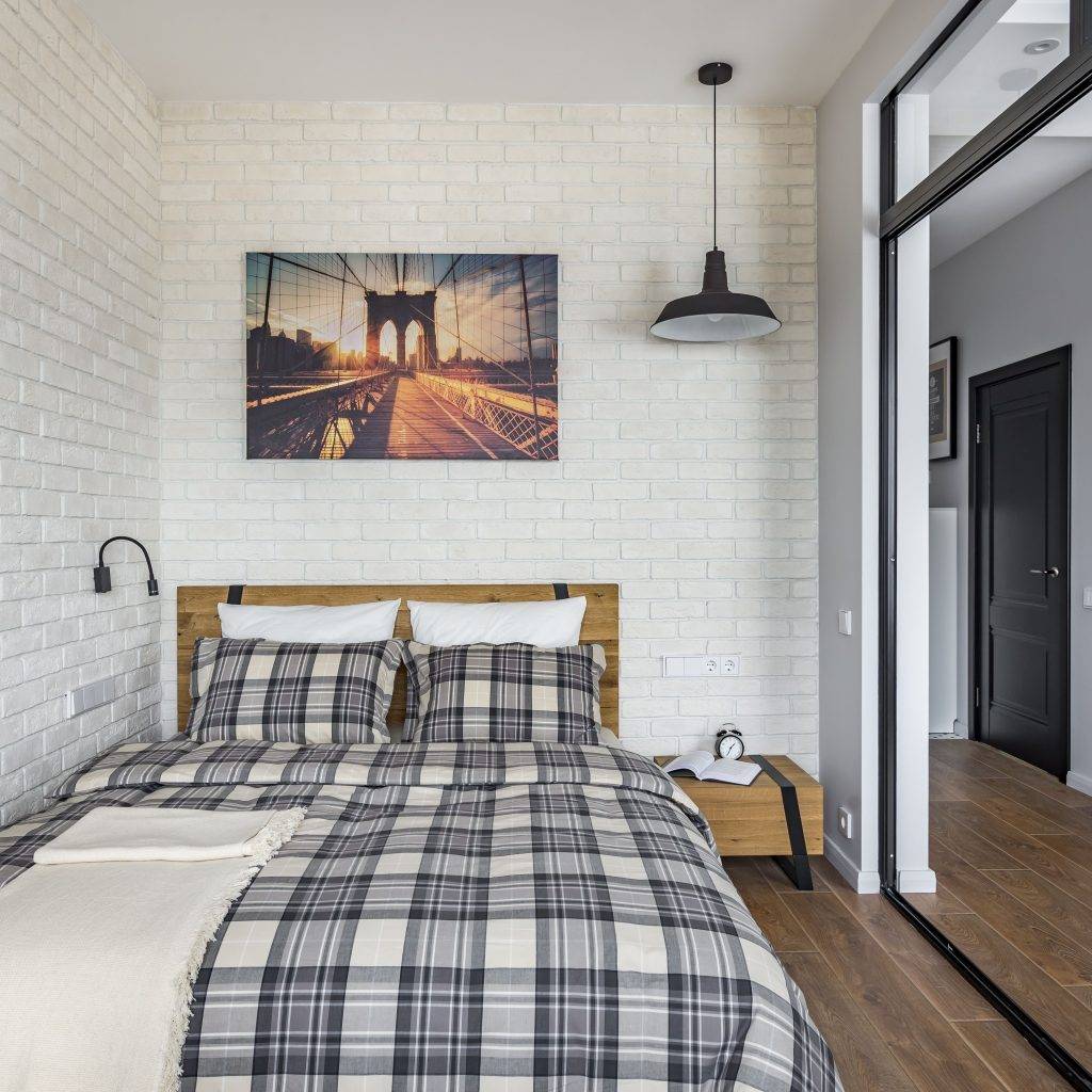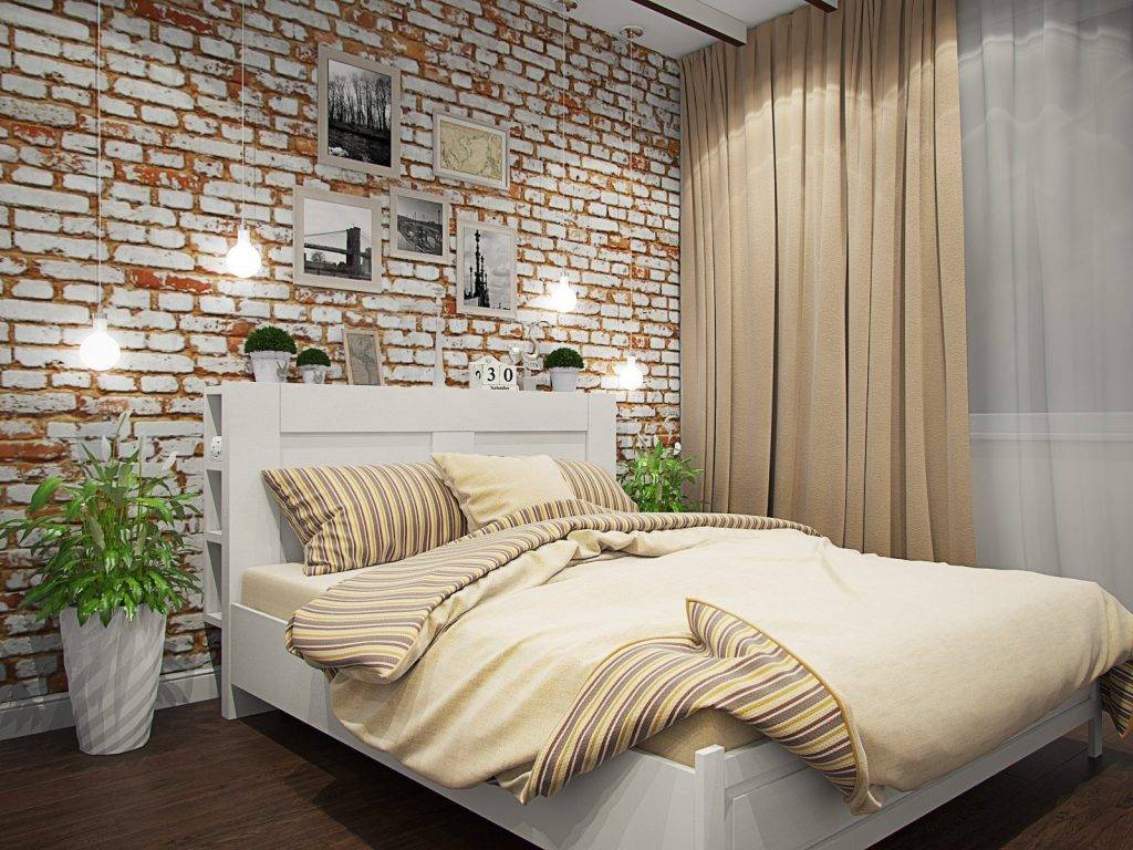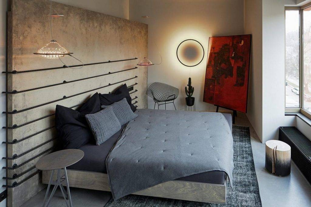 При оформлении дизайна маленькой спальни можно использовать следующие элементы стиля лофт: