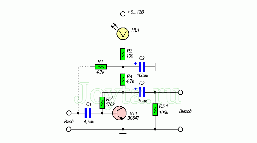 микрофонный усилитель на одном транзисторе