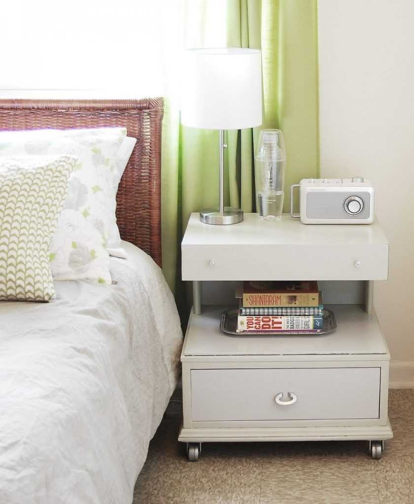 В качестве альтернативы прикроватному столику служит тумбочка, которая также может быть выполнена своими руками. Способы ее изготовления и оформления можно взять из идей для изготовления прикроватного стола, а можно придумать новые.