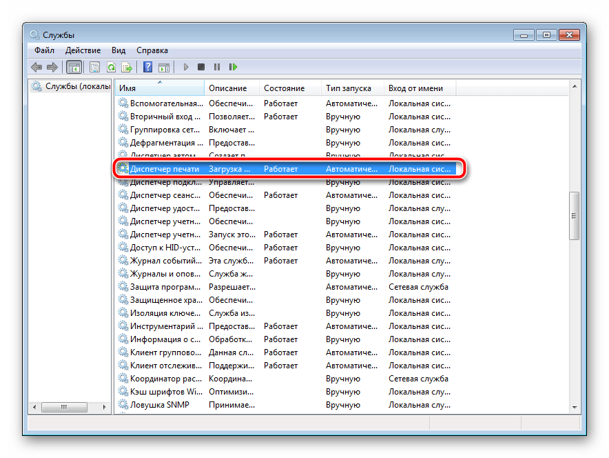 В списке отыщите «Диспетчер печати» и дважды нажмите на нем ЛКМ.