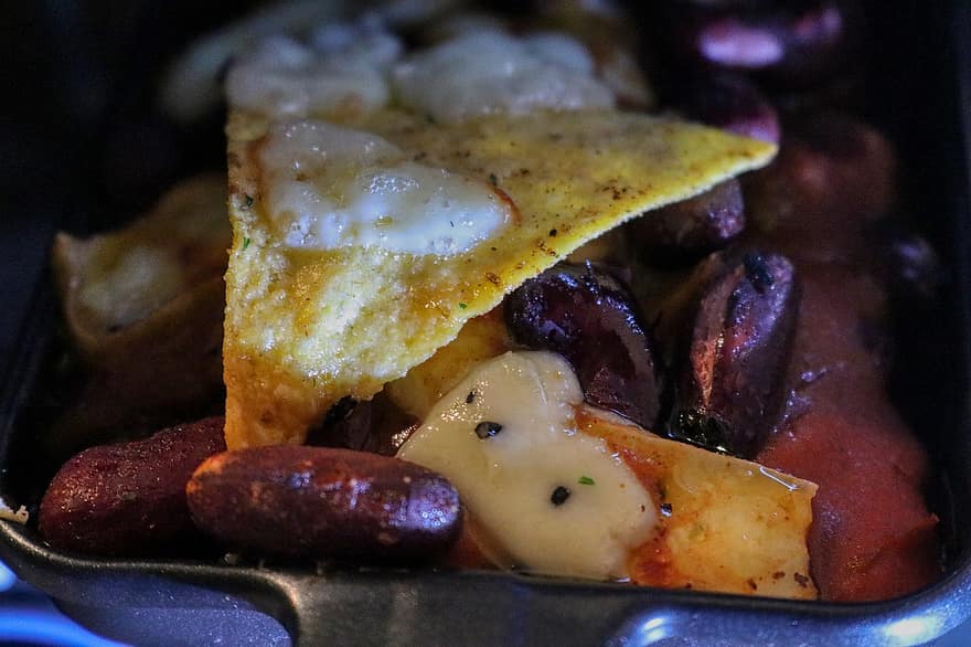 После приготовления всех закусок начинает плавиться сыр. Его необходимо покупать в достаточном количестве, чтобы хватило каждому. При этом желательно заранее купить соответствующее число сковородок, чтобы гости не ждали, когда освободится посуда.