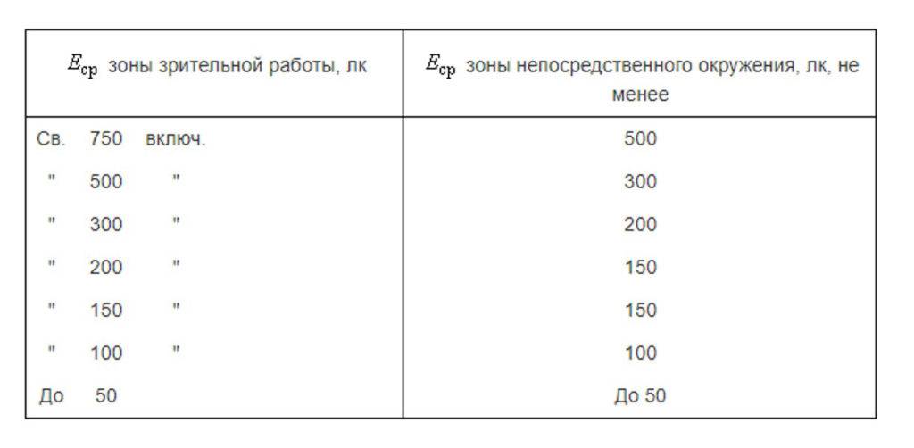 Световые приборы должны создавать определенный уровень освещенности для той или иной части помещения