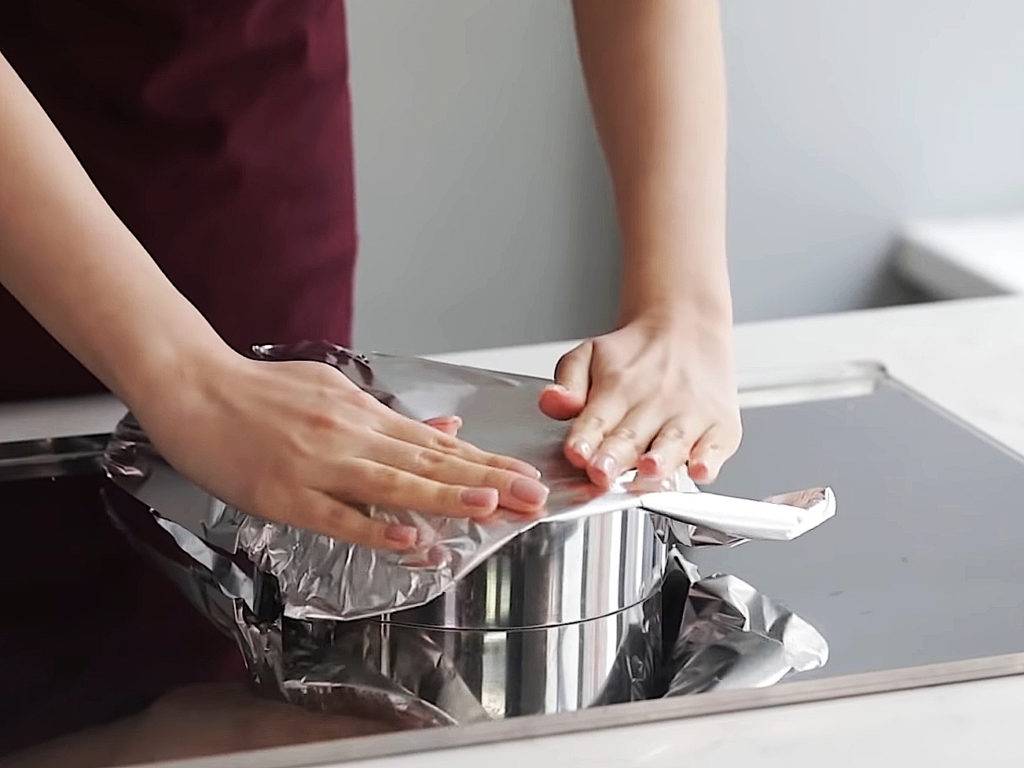 Одноразовые формы из алюминиевой фольги идеальны не только, когда вы идете со своим пирогом в гости. Именно тот факт, что они одноразовые, делают их отличной заменой разъемной форме. Как только пирог остынет, вы можете просто отрезать боковые стороны алюминиевой формы, чтобы выпечка предстала во всей красе. А чтобы сделать это еще легче, сначала охладите пирог в холодильнике. Затем проведите острым ножом по краям формы, прежде чем срезать фольгу.