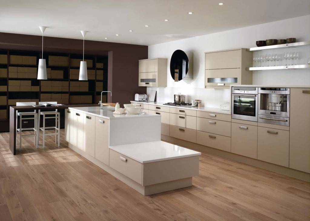 На просторных кухнях будут и вспомогательные зоны, на которых можно размесить кофе-машину, комбайн или другую технику, которой вы ежедневно пользуетесь. Для красоты или безопасности она может быть размещена и в специальных нишах.
