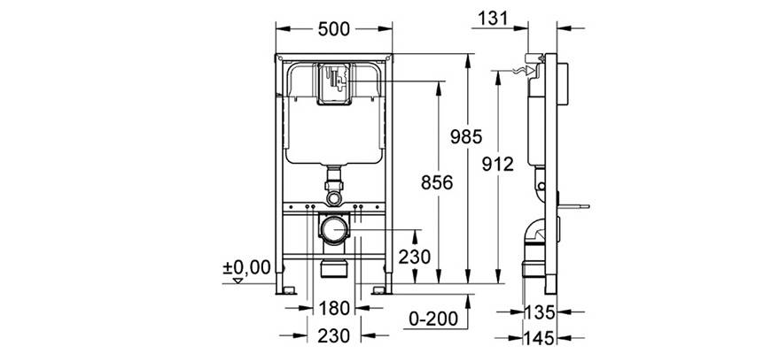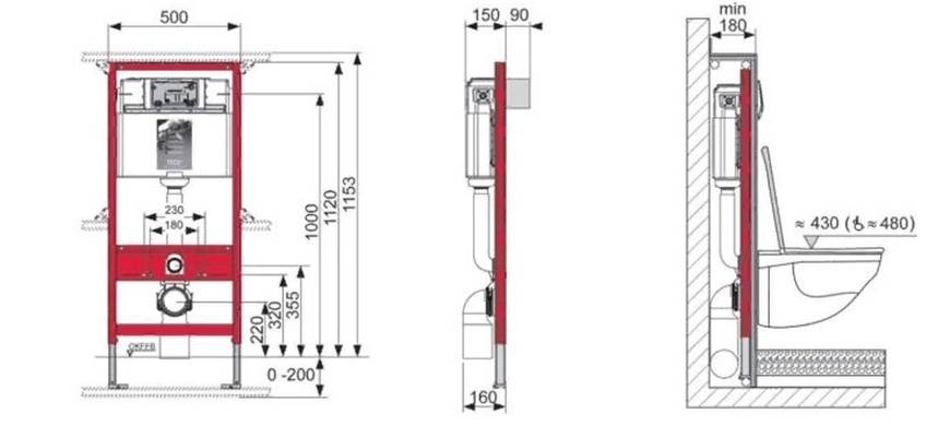 Размеры блочной системы унитазов.