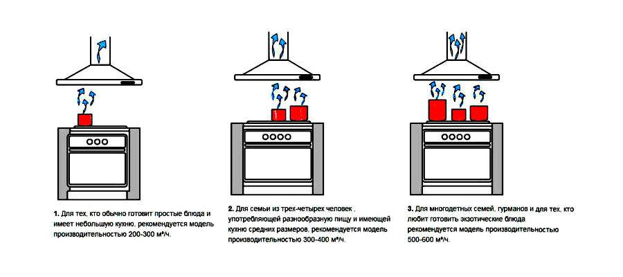 Учитывается высота установки над плитой. Если этот параметр рассчитывают неправильно, устройство не будет справляться со своими главными функциями: эффективным отводом паров и газов и удобством использования рабочего пространства.